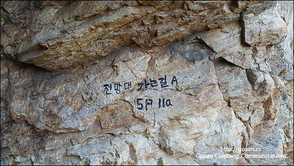 A루트는 약 15m이며 볼트는 12개 페이스와 오버행 등반이며 난이도는 5.11a 정도의 난이도 이다.