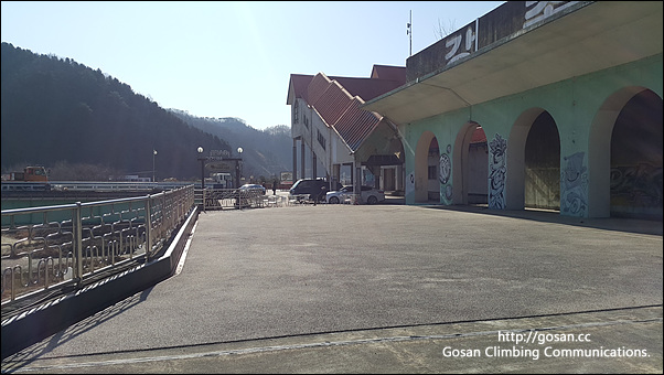 주차는 옛 강촌역 레일바이크 주차장에 5대 정도의 주차가 가능하지만 지하 카페 이용이 아니라면 이 역사 아랫길에 10 여대 정도로 주차가 가능한 공간이 있으니 그곳에 주차를 하면 된다.위 사진의 좌측 난간대 아래 쪽이다.즉, 차량이 다닐 수 있는 도로이다. 옛 다리를 지나 조금가다 보면 유턴하는곳으로 좌회전하여 아랫길을 오면 된다.