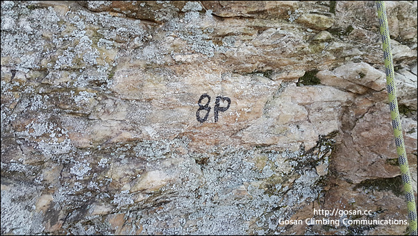 8 피치는 5m정도의 길이에 3개의 볼트와 페이스 등반 그리고 난이도는 5.9 이다.
