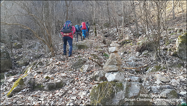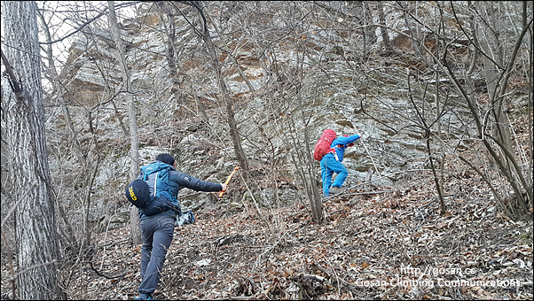 이 루트는 산머루 산다래 김 연홍씨가 혼자서 지난 겨울내 작업을 해 오늘 우리팀들은 점검 및 등반길에 리딩자를 포함 5명이 등반길에 나섰다.